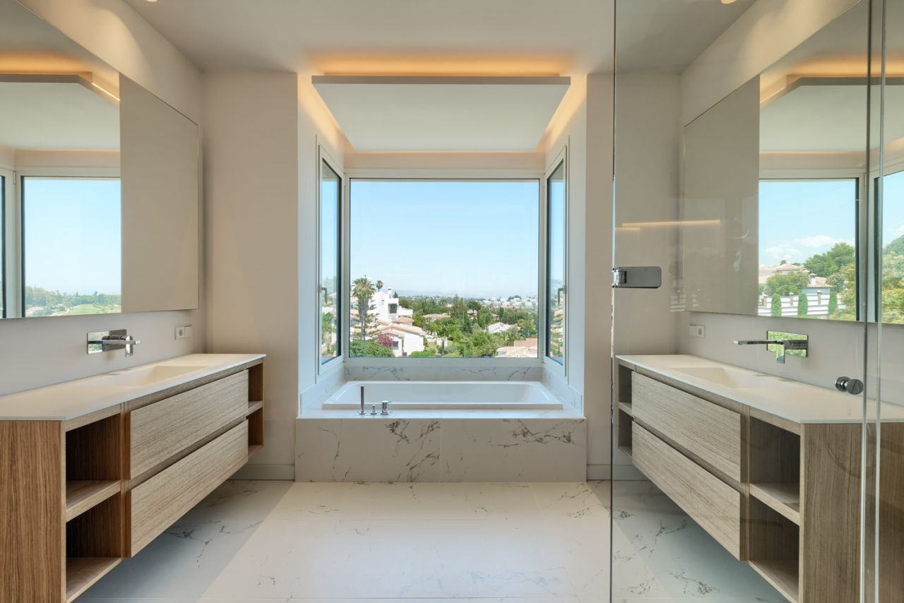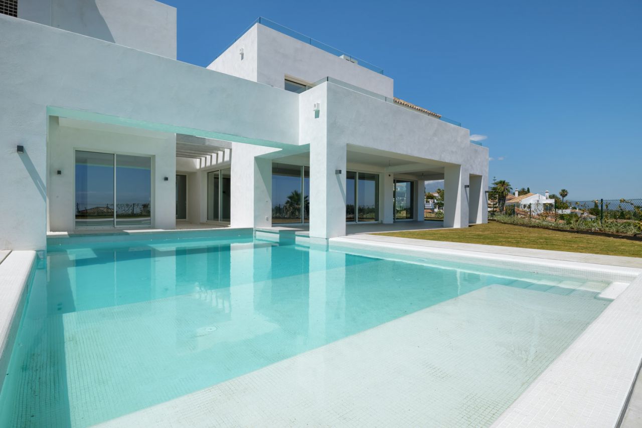 Top quality new built villa with spectacular sea- and mountain views situated in El Paraiso Alto. South facing. Close to all amenities and Paraiso Golf & Country Club.