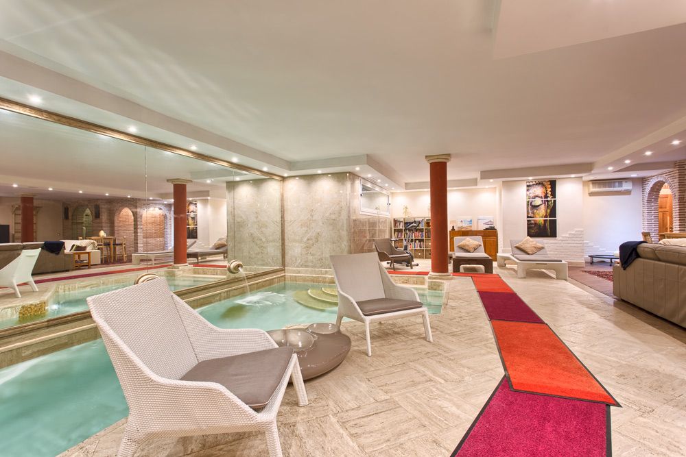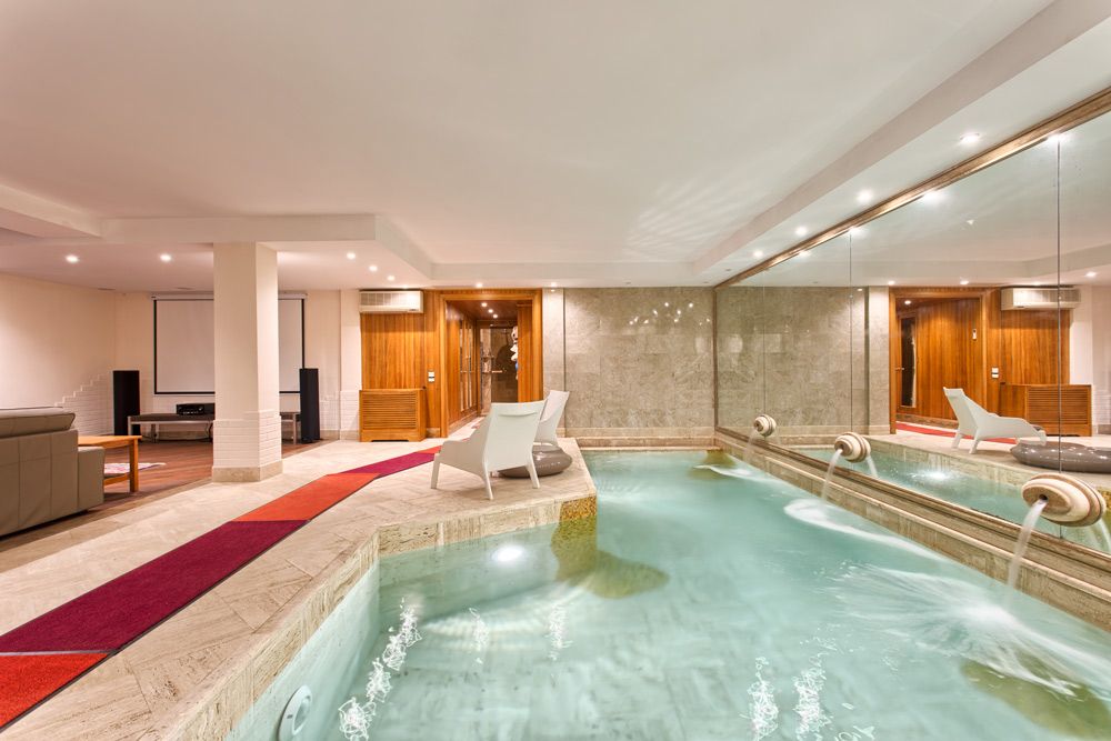Basement. Games- and entertainment area, indoor pool, sauna, fitness area, bodega. Separate staff apartment. Garage for 4 cars.