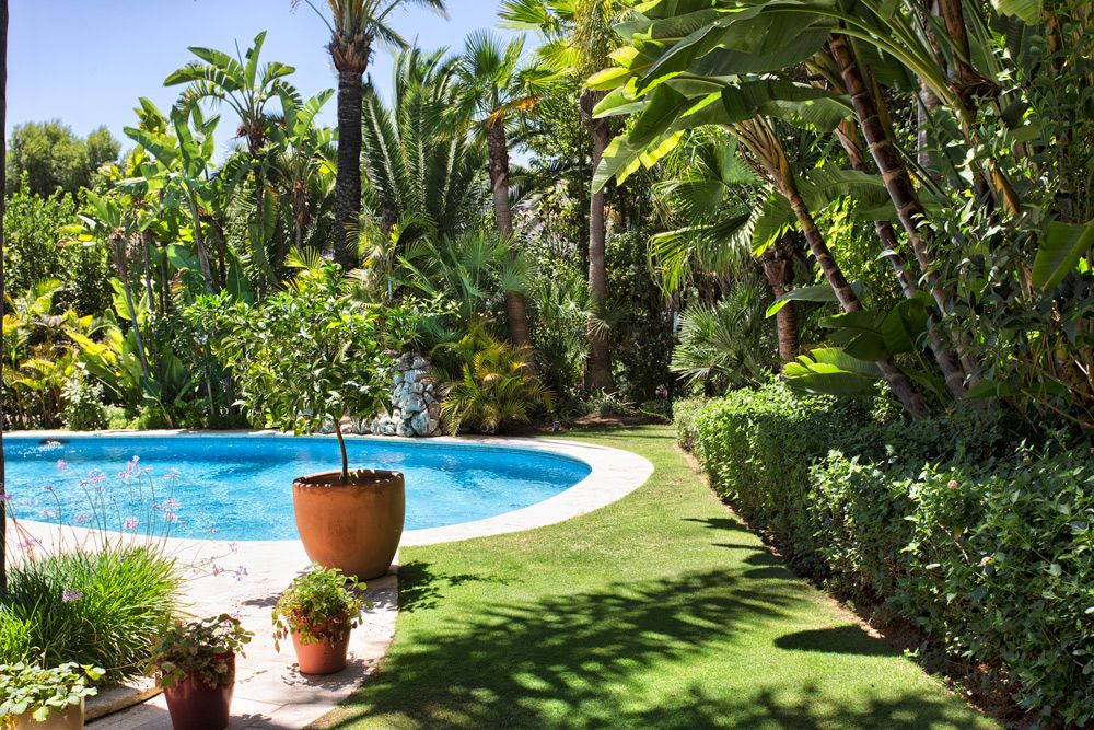 Beautifully located quality villa on the Golden Mile near the Puente Romano Hotel. Fully private and quiet. South facing. Close to the beach, Puerto Banus and Marbella town center.