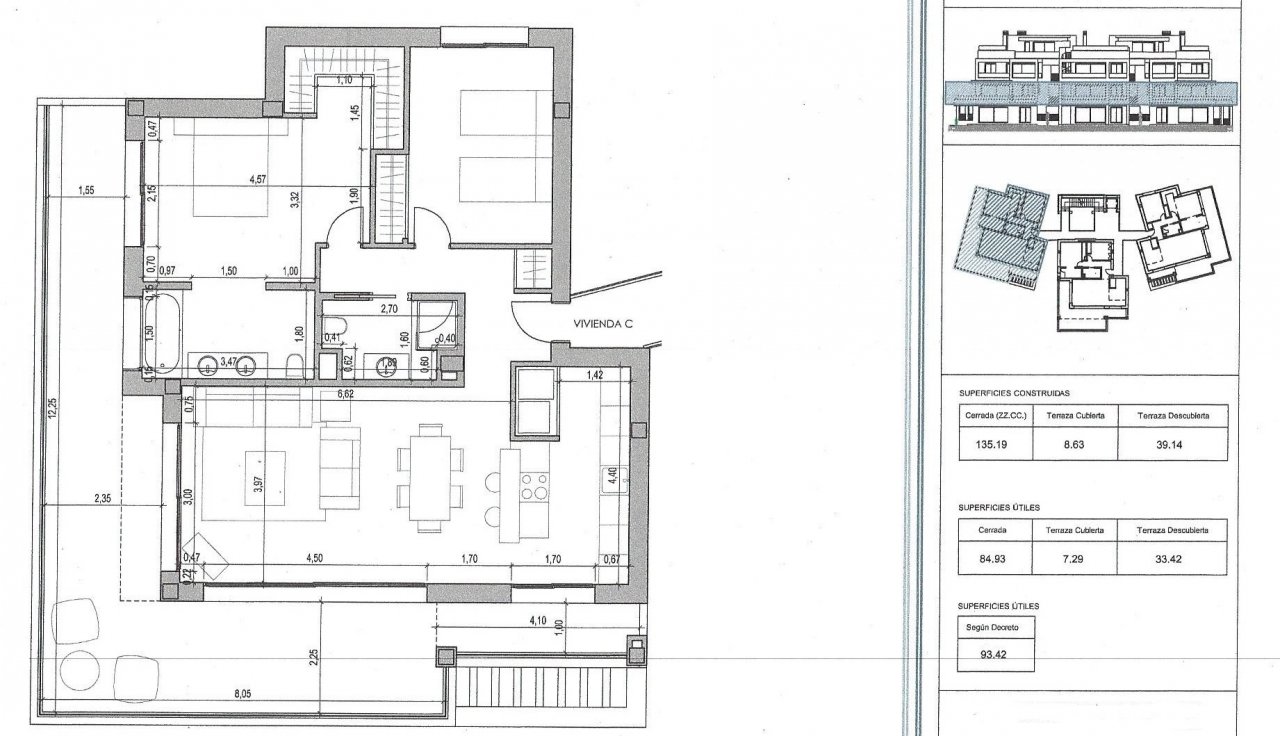 A luxury residential complex with gardens, an overflowing swimming pool that accentuates the views and a building inspired by Andalusian architecture, but with clean, modern lines, distributed in three fan-shaped blocks. The houses have up to 308 m2 built area, 2 and 3 bedrooms, 2 bathrooms, a garage and a storage room each.